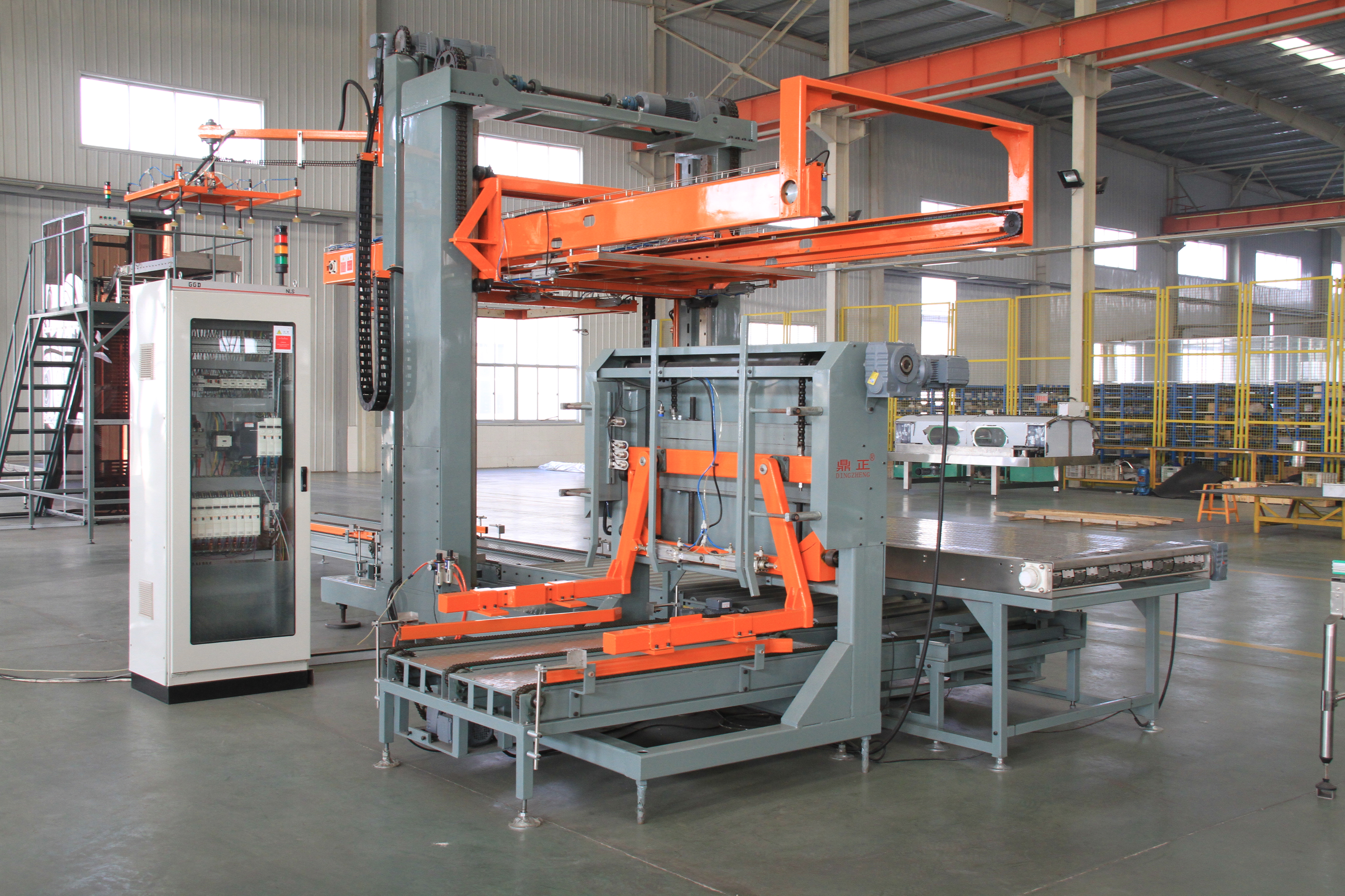 辅机有:垛板收集机、隔板收集架、上瓶垛链道、出瓶链道、出垛板滚筒、出垛板链道、安全护栏、操作平台等组成。
